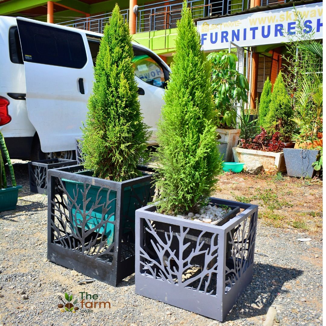 The Metalic CNC Planter 002 offers a balanced and modern profile, making it ideal for medium-sized planters in residential or commercial spaces. With dimensions of 43cm by 43cm by 40cm, this planter is engineered to house both square and round planter inserts seamlessly. Over time, plastic and fiberglass pots often fade, stain, or become unsightly, and repainting them is either difficult or impossible. This CNC planter solves that problem by covering the old planter and instantly transforming the space with a premium design aesthetic. These metallic CNC planters are a signature product of thefarm.co.ke and are exclusively made and sold by them in Kenya. They can be shaped differently to suit specific architectural themes and are suitable for indoor or outdoor installations. Custom CNC or concrete planter solutions are available upon consultation, including site visits for large-scale projects.